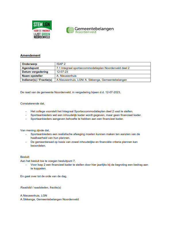 Dit amendement is op 12 juli 2023 ingetrokken nadat de wethouder toezegde dat er bij de consulterende raadsvergadering op 18 september 2023, meer duidelijk zal zijn over de plannen en de verwerking in financiële voorstellen voor de begroting 2024.